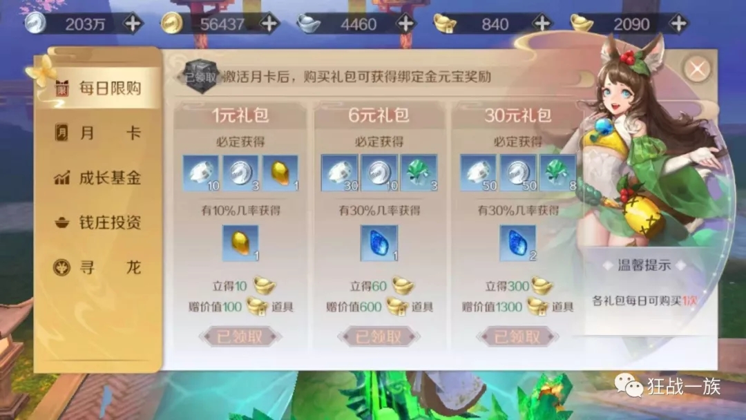还有银币和有几率获得天罡石,如果买了月卡,除了购买礼包的元宝以外,还是赠送绑定元宝,有了这些东西,