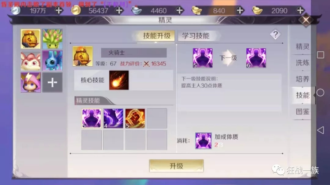 相对于其他的提升属性,我认为提升精灵的技能花费少,收益也算不错,