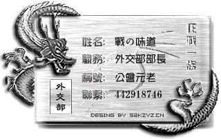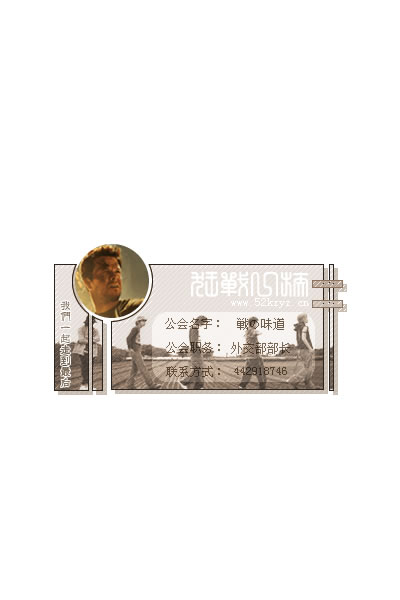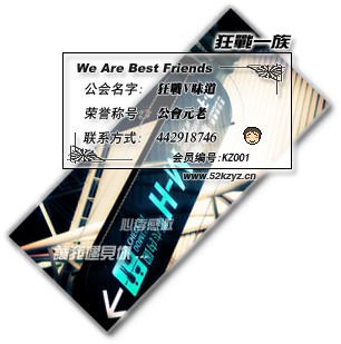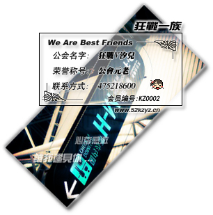 狂战一族网游公会勋章留存图 此名片是论坛职务名片,内容含在工会内姓名,职务,称号,联系QQ号等~ 此名片为公会正式成员名片,男款 此名片为公会正式成员 名片,女款 论坛另一款会员名片(责任编辑:狂战V味道) |